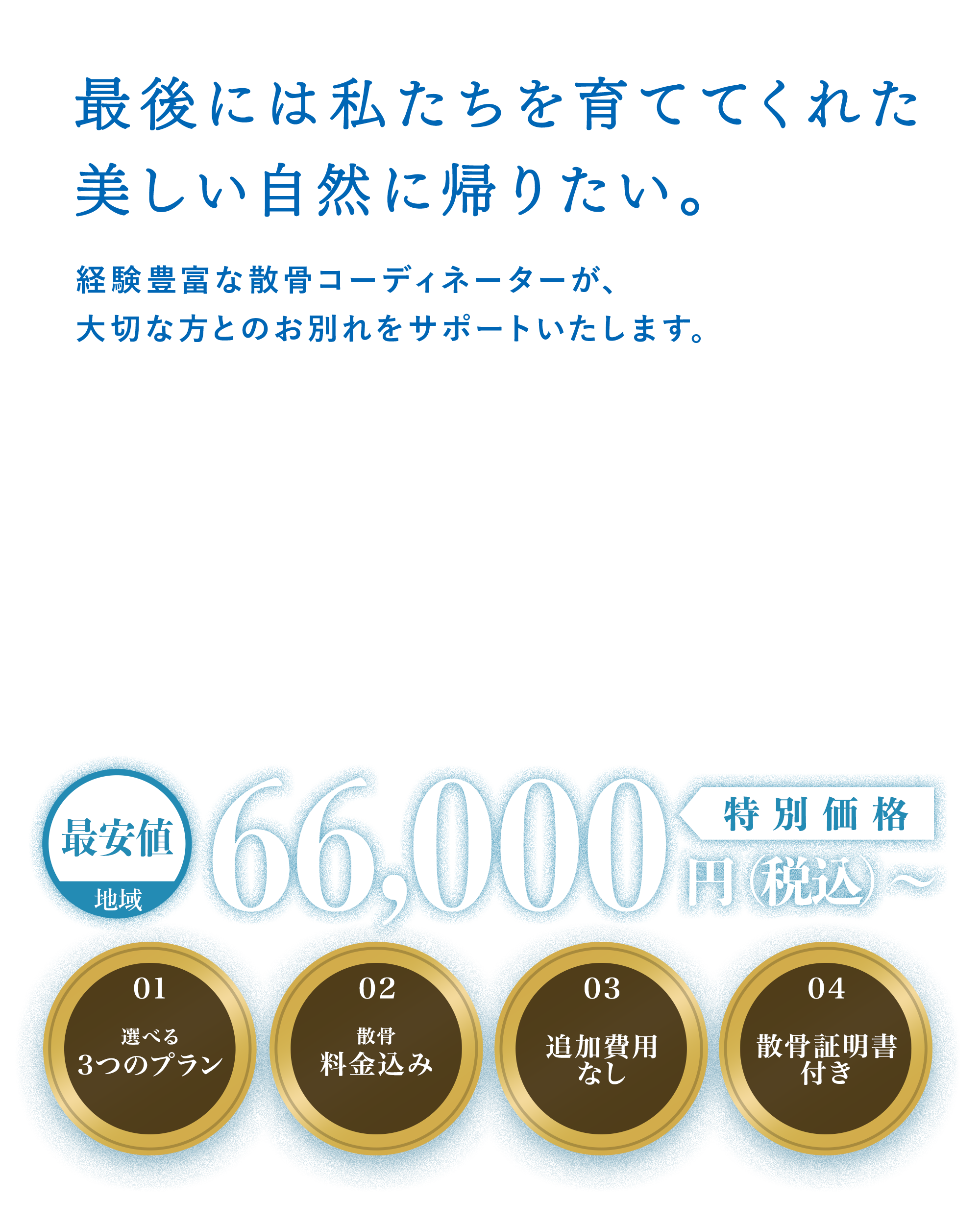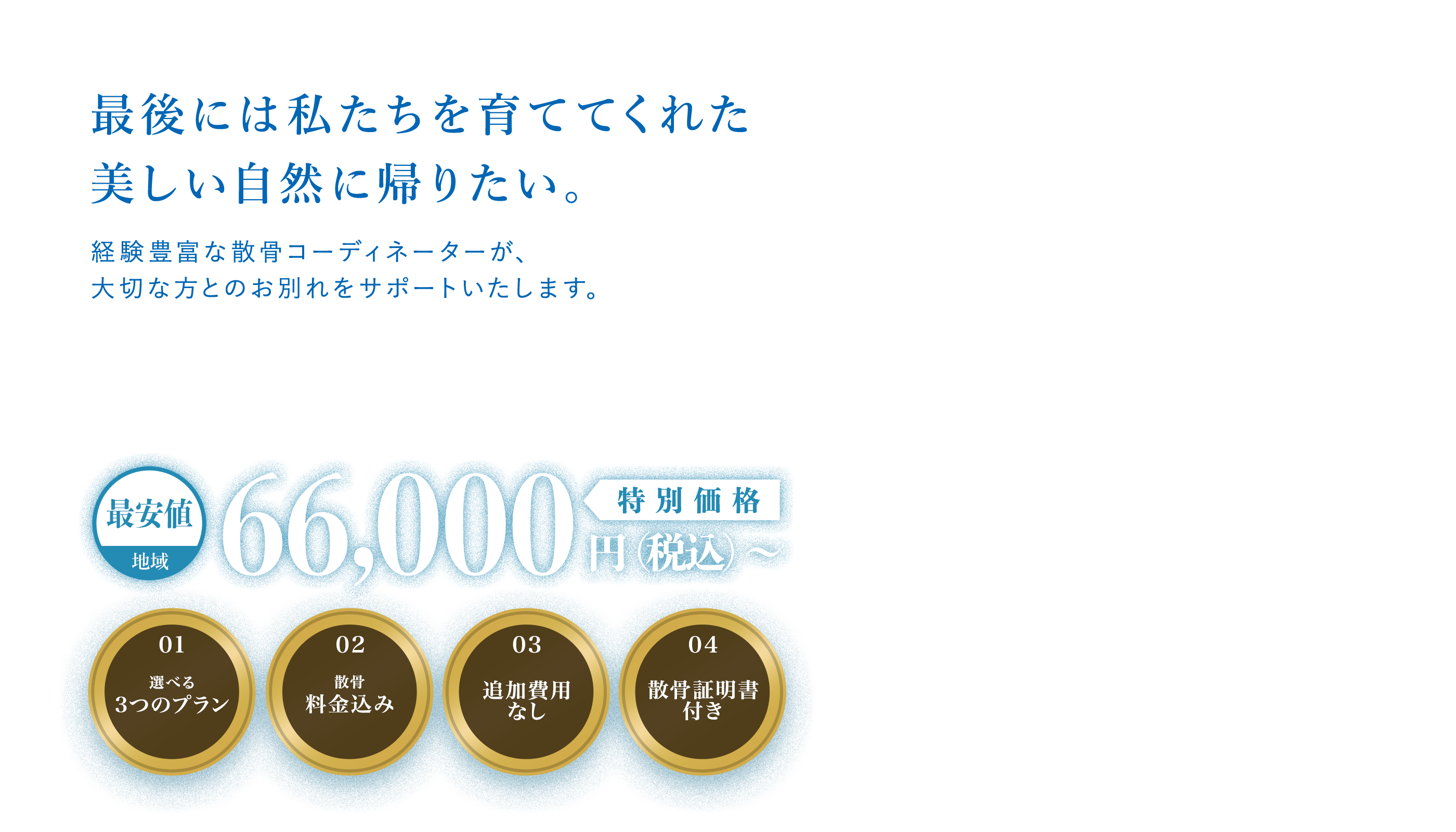 「海の散骨」では、全国各地の海域で散骨サービスを提供しています。お住まいの場所と散骨を希望される海域が離れていても、心を込めて、見送る方々の気持ちに寄り添ったしっかりとした海洋葬(海葬)をお届けいたします。